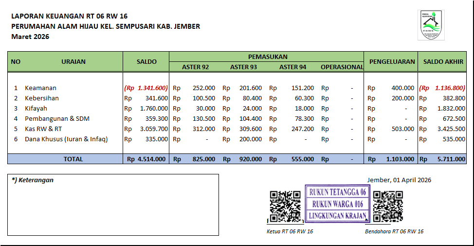 Selamat datang di laman Laporan Keuangan RT 006 RW 016, di mana asupan Anda dalam transparansi data keuangan tanpa batas siap disantap!